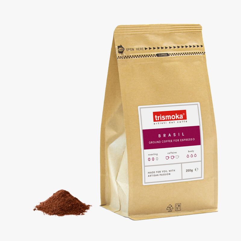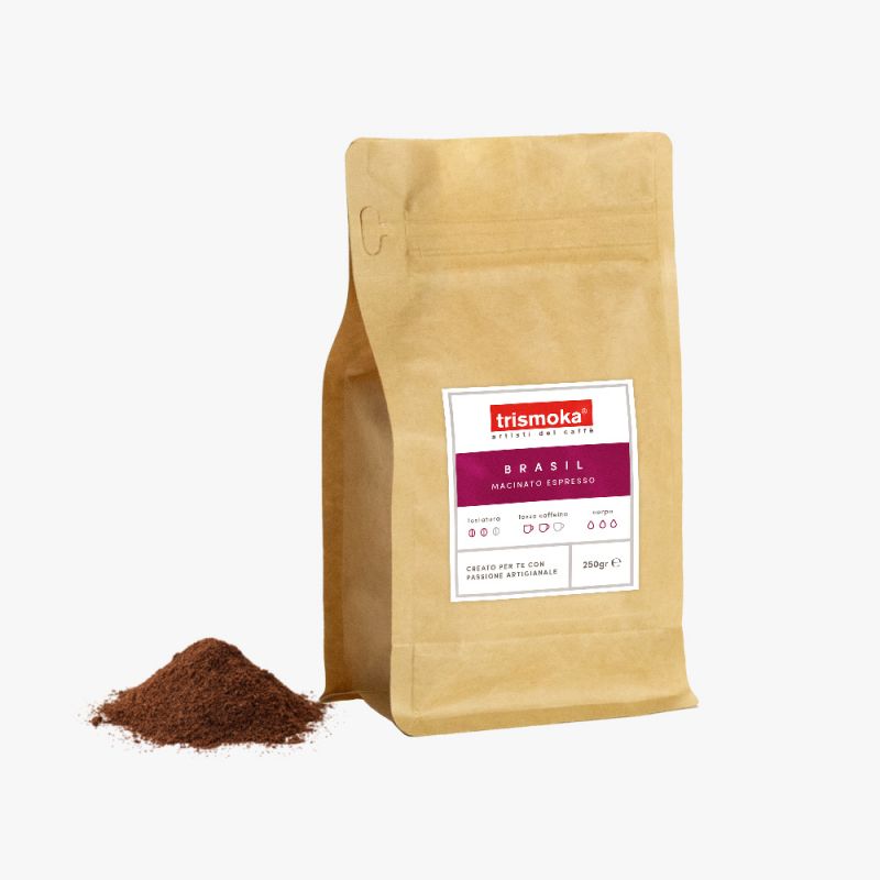 Wenn du einen milden, cremigen Kaffee mit Noten aus Hasel- und Walnüssen liebst, greife zu Brasil. Eine gemahlene Kaffeemischung für Espresso aus den besten Arabicas, die von ausgewählten Plantagen stammen (Kolumbien, Guatemala, Brasilien, Kongo). Intensiver Körper und mittlerer Koffeingehalt. Energischer Nachgeschmack.