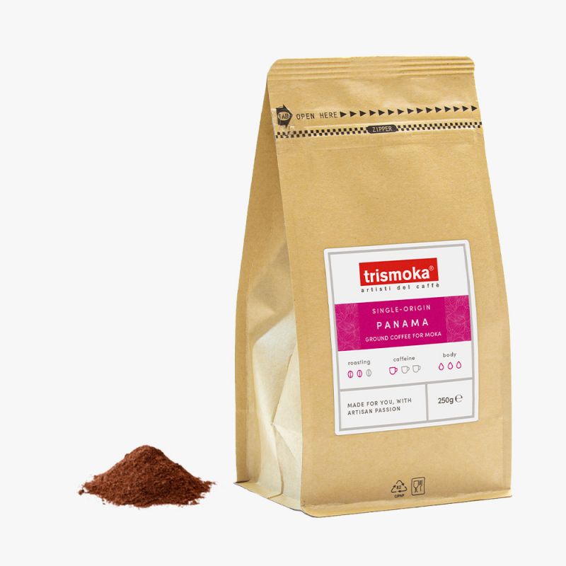 Panama: Der Single Origin Trismoka wurde als elegante Kaffeebohne für Bars geboren, jetzt auch im praktischen gemahlenen Format für Ihren Moka. Auf diese Weise können Sie zu Hause einen starken Espresso mit einem Schokoladengeschmack genießen.
